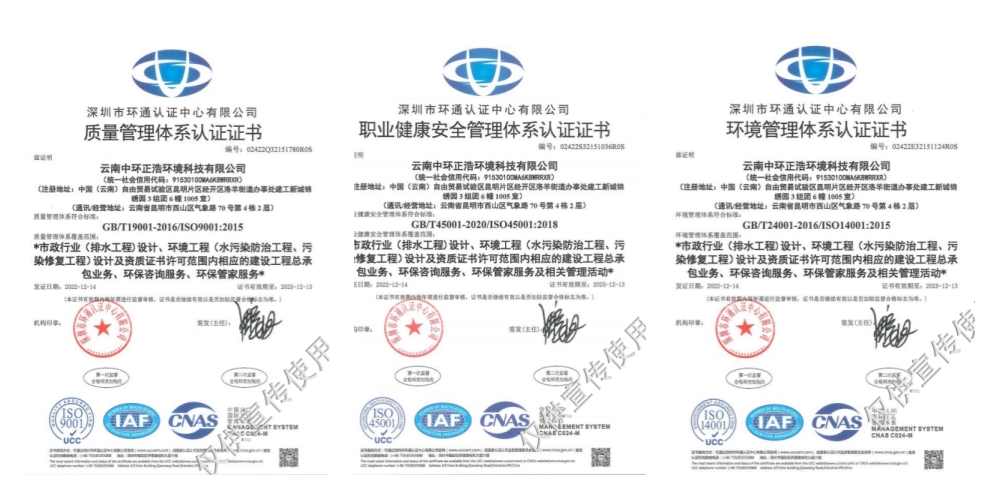 云南中環(huán)正浩環(huán)境科技有限公司成立于2016年12月09日,企業(yè)的經(jīng)營范圍為:許可項目:地質(zhì)災(zāi)害治理工程施工;地質(zhì)災(zāi)害治理工程監(jiān)理;地質(zhì)災(zāi)害治理工程勘查;地質(zhì)災(zāi)害治理工程設(shè)計;各類工程建設(shè)活動;地質(zhì)災(zāi)害危險性評估;建設(shè)工程勘察;建設(shè)工程設(shè)計。一般項目:環(huán)保咨詢服務(wù);生態(tài)資源監(jiān)測;環(huán)境保護(hù)監(jiān)測;固體廢物治理;地質(zhì)災(zāi)害治理服務(wù);土壤污染治理與修復(fù)服務(wù);土壤環(huán)境污染防治服務(wù);水污染治理;水環(huán)境污染防治服務(wù);大氣污染治理;大氣環(huán)境污染防治服務(wù);生態(tài)恢復(fù)及生態(tài)保護(hù)服務(wù);技術(shù)服務(wù)、技術(shù)開發(fā)、技術(shù)咨詢、技術(shù)交流、技術(shù)轉(zhuǎn)讓、技術(shù)推廣;專業(yè)保潔、清洗、消毒服務(wù);環(huán)境保護(hù)專用設(shè)備銷售;環(huán)境監(jiān)測專用儀器儀表銷售;貨物進(jìn)出口;技術(shù)進(jìn)出口。持有住建部門頒發(fā)的市政行業(yè)專業(yè)乙級和環(huán)境工程專項乙級工程設(shè)計資質(zhì)證書、國家發(fā)改委備案的工程咨詢單位證書(備案編號 9153010MA6K8WRRXR-20)、環(huán)境保護(hù)污染治理資質(zhì)乙級證書、環(huán)保管家資質(zhì)證書、環(huán)境咨詢認(rèn)證證書等。