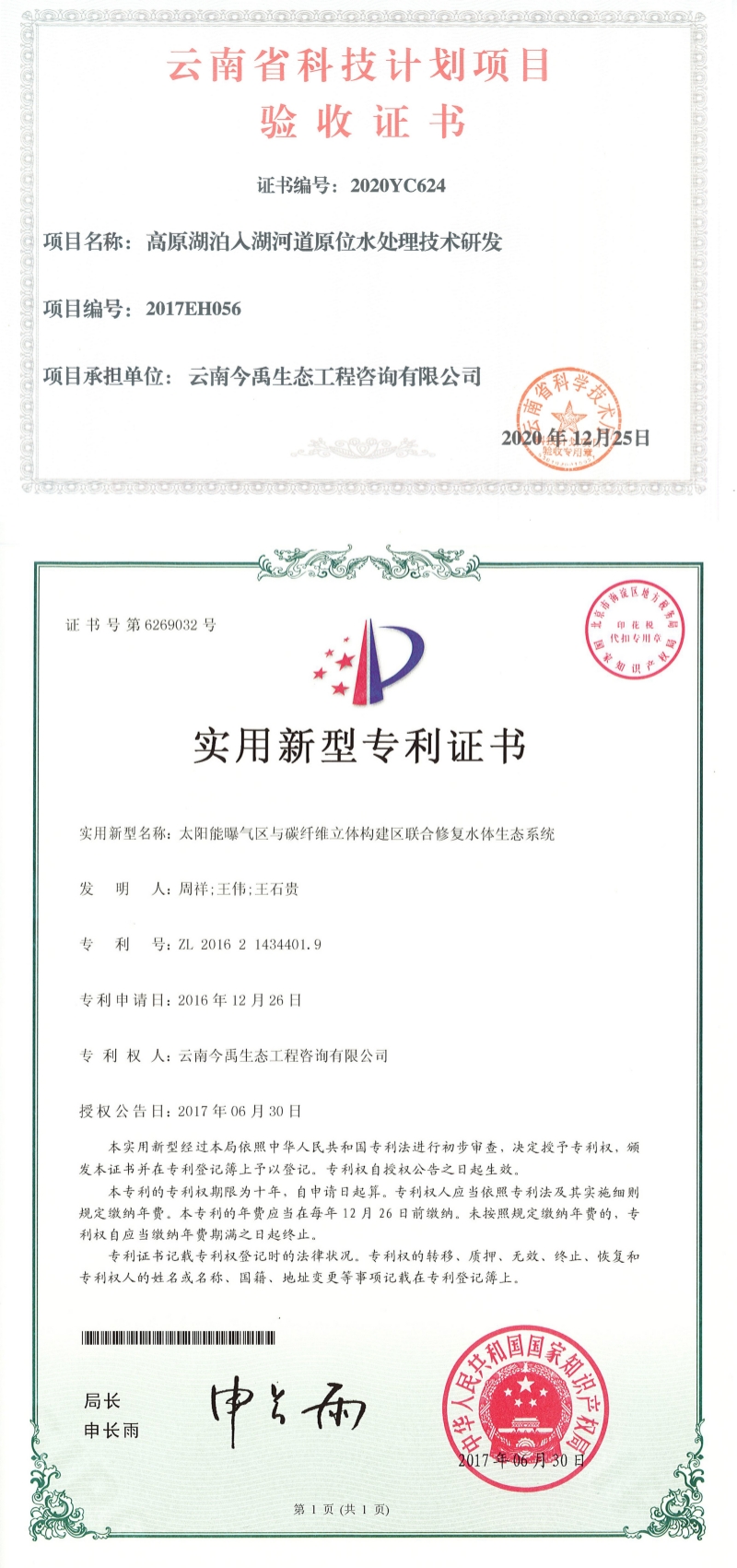 公司先后認(rèn)定為“高新技術(shù)企業(yè)”、“國家科技型中小企業(yè)”、“云南省科技型中小企業(yè)”、“云南省創(chuàng)新型中小企業(yè)”、“云南省專精特新中小企業(yè)”、“昆明市科技創(chuàng)新型試點(diǎn)企業(yè)”、“昆明市重點(diǎn)科技服務(wù)機(jī)構(gòu)”和“昆明市企業(yè)技術(shù)中心”,通過ISO9001質(zhì)量管理體系認(rèn)證,是云南省環(huán)保產(chǎn)業(yè)協(xié)會理事單位,“云南省水土保持學(xué)會生態(tài)修復(fù)和城市水土保持生態(tài)建設(shè)專委會”掛靠單位。